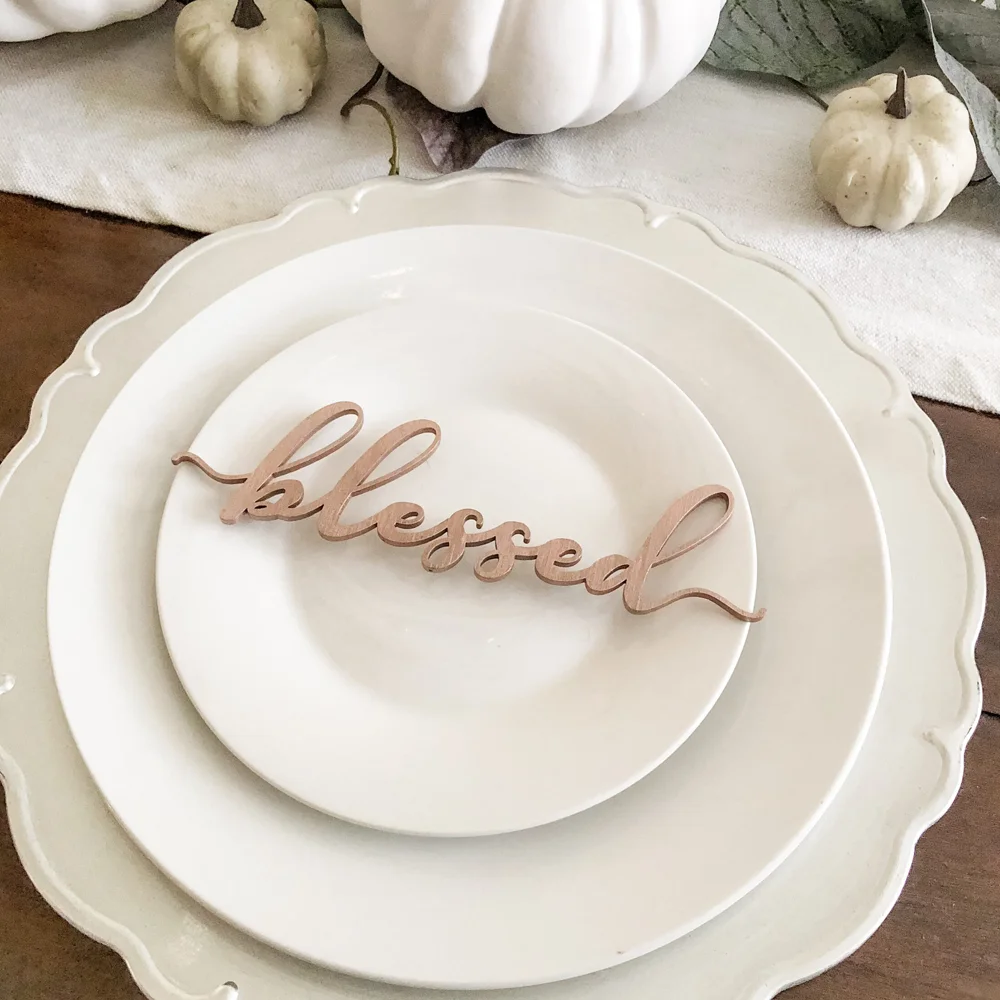 10pcs Thanksgiving Place Cards Fall Table Plates Decor, Holiday Place Setting Thankful Blessed Grateful Gather 5cm tall