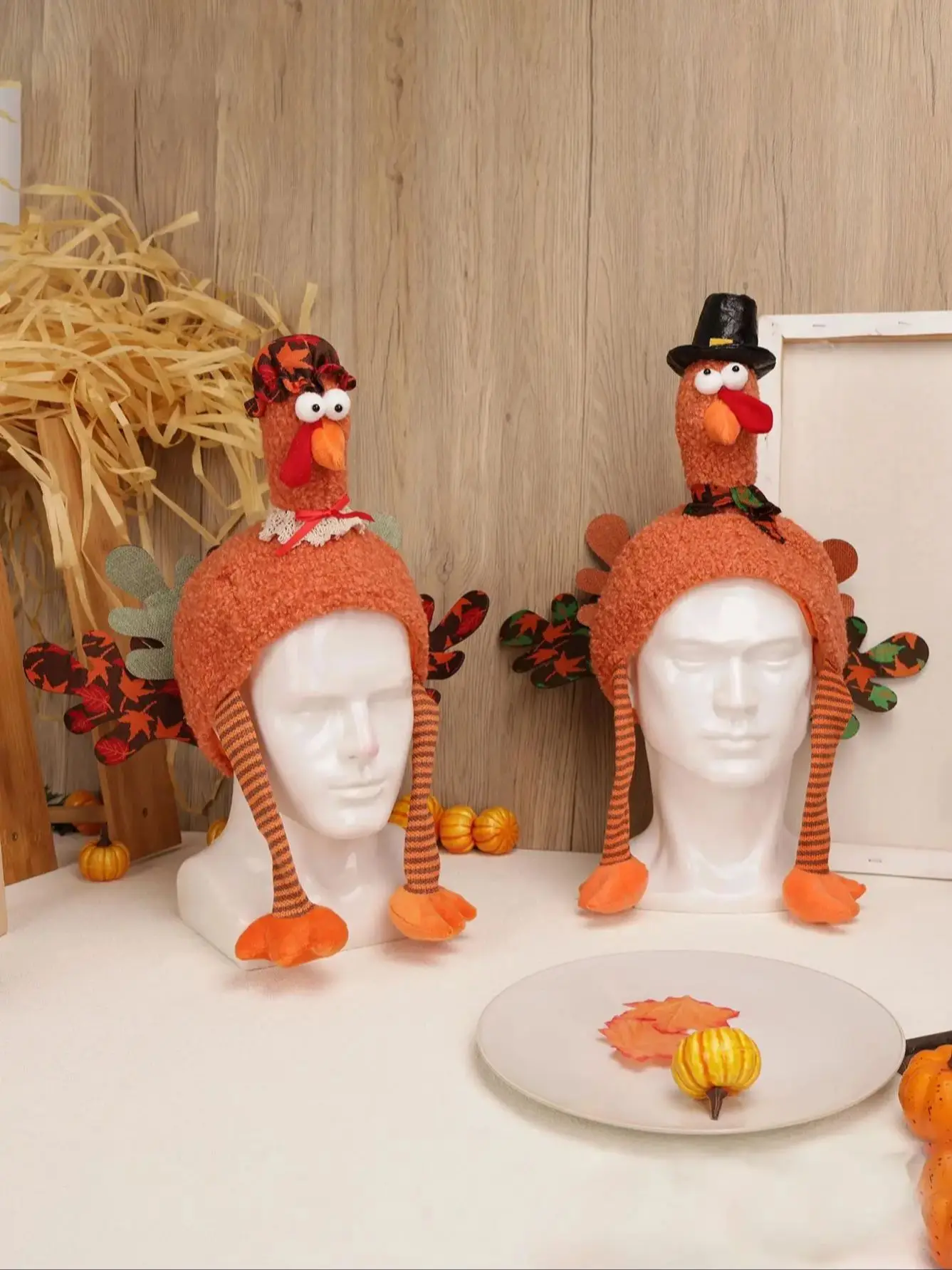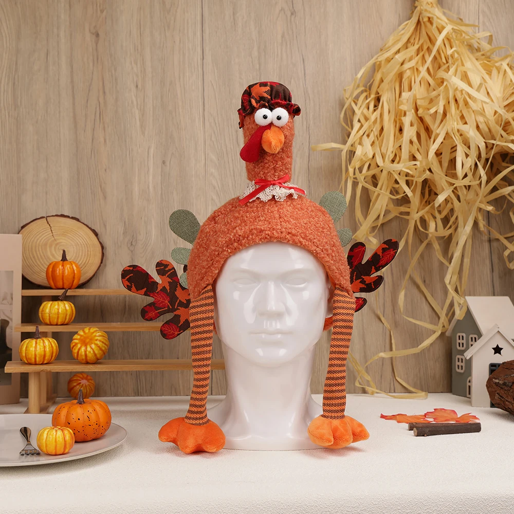2PCS Thanksgiving decoration, creative plush turkey hat holiday home decoration and role-playing, suitable for adults